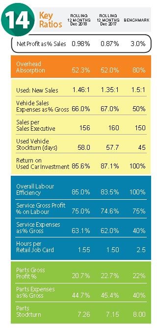 During the rolling 12 months to December the average car dealer return-on-sales figure rose from 0.87% in 2017 to 0.98% in what Jones described as “a very creditable result”.