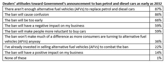 Over a third of dealers (36%) said the ban would not make much of a difference as more consumers were turning to AFVs as it was.