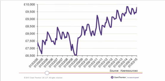 Low interest rates and inflation, a strong pound to the Euro, gradual increases in new car prices, high consumer confidence and strong residuals (see graph below) have combined to create a positive market for new car retailing, allied to an emerging trend of vehicle use rather than ownership amongst the newest generation of buyers.