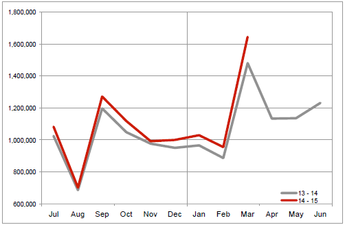 so far, with particularly large increases in units registered in March 2015 compared to March 2014.
