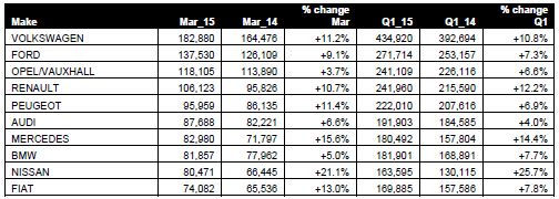 Volkswagen remains the market-leading brand, with an increase in sales of 10.8% in Q1. Ford reclaimed second place by leading the traditionally strong