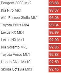 Toyota products lined-up just outside the top three, with the Prius Mk4 (93.04%), Lexus RX Mk4 (92.99%) and Lexus NX (92.90%) all achieving impressive scores.