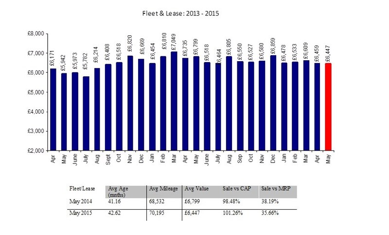 Year-on-year, average values were down by £29 (0.5%) compared to April 2014, with both age and mileage slightly higher in 2015. Performance against CAP improved by two points compared to 2014.