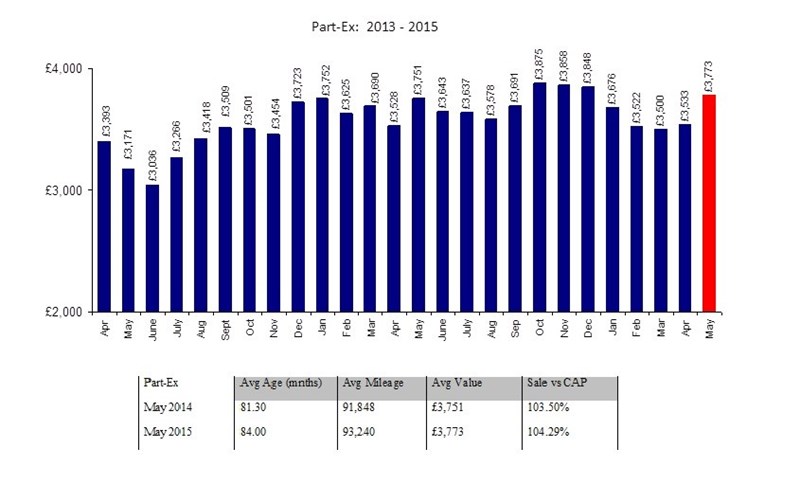 There was a significant £240 (6.7%) increase in part-exchange LCV values in May compared to April, as values reached their highest point this year. CAP average comparisons rose by nearly two points to 104.2% and continue to outperform the fleet & lease sector by some margin. Year-on-year values were ahead by £22, despite the average PX van being both older and higher mileage in 2015. CAP performance was up, year-on-year.