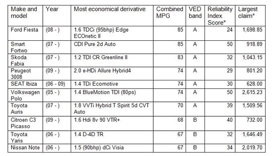 Ranking cars based on fuel economy in this instance, Warranty Direct used its reliability index to name the top ten reliable makes and models of three years or more, as well as the optimal engine and trim combination for the best return at the pumps.