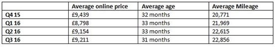 Average prices rose £57 to £9,211 compared with £9,154 in Q2 and over £400 higher than in Q1 2016 (£8,798), fuelled by a strong stream of quality used ex-fleet stock and dealer part exchanges coming into the market.