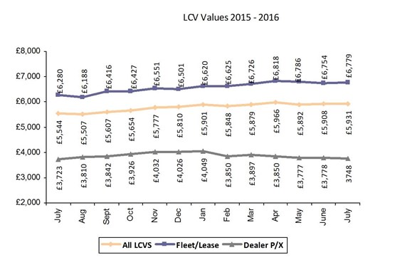 The fleet and lease sector saw average values rise from £6,754 in June, to £6,779 in July.