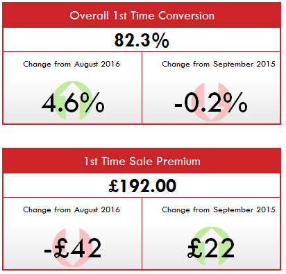 - The first time premium was £192, down by £42 in August. However this was up £22 on the same period last year.