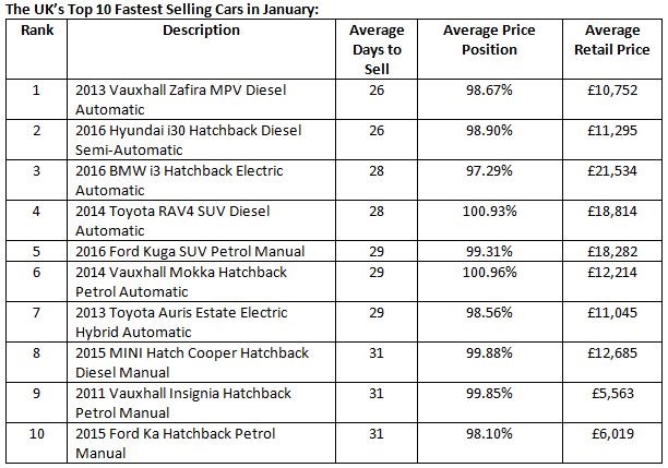 Vauxhall’s Zafira was the UK’s fastest selling used car in January, however, taking an average of just 26 days to leave the forecourt.