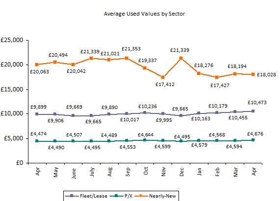 For the second month running, average values in the fleet and lease sector rose to a record high, with a small month-on-month rise of just £18 establishing a new highpoint of £10,473.