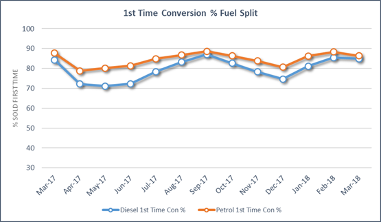 Diesel cars in the Premium Upper Medium segment converted at a slightly faster rate than petrol in February and March this year.