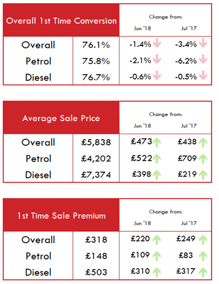 In its monthly summary of the performance of the auction sector the National Association of Motor Auctions (NAMA) reported that the average sale price of a vehicle offered at auction had risen by £473 from June 2017 and £438 from July 2017.