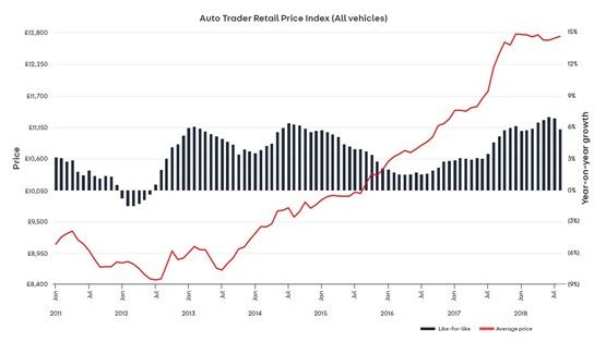 Average used vehicle values declined slightly to £12,743 during the period but remained 6% up on the same period in 2017, the Auto Trader Retail Price Index revealed.