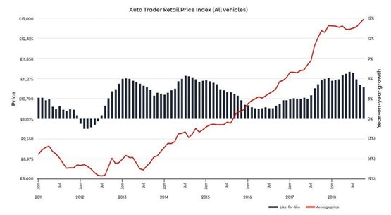 The average price of a used car rose 5% year-on-year to £12,965 last month, marking the lowest rate of growth in used car prices since August 2017.