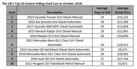 Hyundai’s Tucson SUV has emerged as Auto Trader’s fastest selling car for October after the 2015 diesel manual variant took an average of just 19 days to leave car dealer’s forecourts.