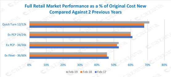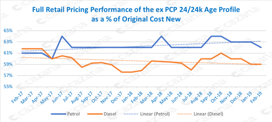 For the time being the PCP market looks vibrant although the previous chart did highlight parity of retail pricing at 24 months old.
