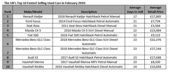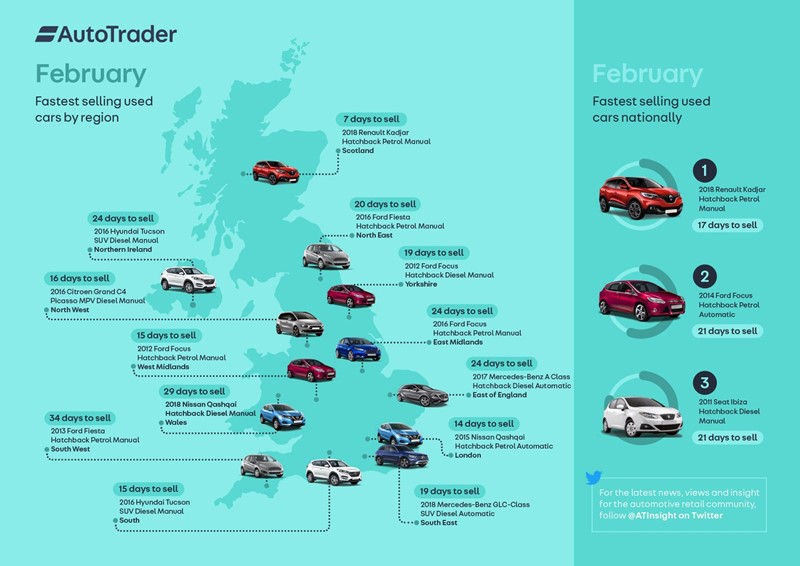 Renault's Kadjar SUV was February’s fastest selling used car on Auto Trader – capturing car buyers’ attention in an average of just 17 days.