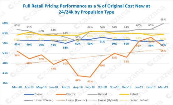 Electric propulsion pricing strength is attributable to the greater volume of cars coming to the used market with more usable driving ranges.