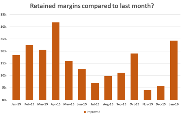 Despite record new registrations in 2015, it proved a ‘roller coaster’ year for retained margins. One in five dealers in our survey saw an improvement in margins through the start of the year. Equally, we saw a near 20 per cent fall in those dealers who had seen a fall in margin.