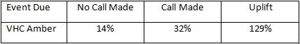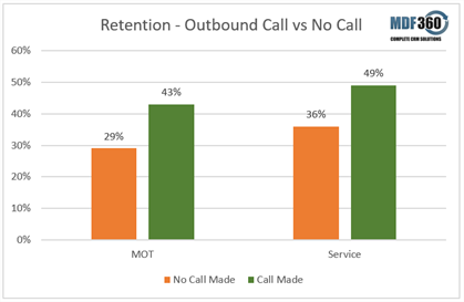Clearly outbound calls come with large gains with an uplift in retention of 48% more MOTs and 36% more services where calls are made vesus where not.